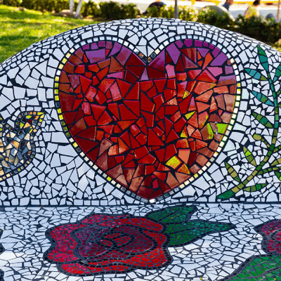 La Plaza de los Azulejos es una galería de arte al aire libre, donde cada rincón ha sido cuidadosamente decorado con pedacitos de azulejos que se unen para formar asombrosas obras de arte.